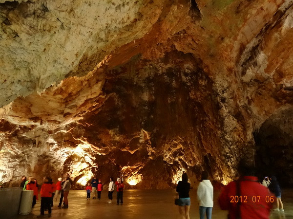 斯洛維尼亞很進步,坐著小火車進山洞,哇!約十分鐘下車,沿途美不勝收,可見洞之大,名符其實美又巨!
