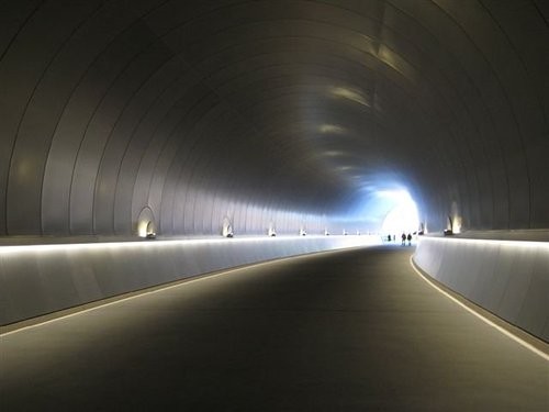 走進這座位於日本滋賀縣甲賀市信樂町桃谷山區間的MIHO美術館,踏上兩旁皆是櫻花樹與楓樹的寬敞步道,眼前景緻優美,但卻空無一物。經過曲曲折折的5分鐘路程後,前方出現一座拔起的矮山與隧道。於朗朗晴空下踏進隧道,讓人頓時眼前一片漆黑,等到適應後,才逐漸看到隧道裡的燈光造景。短短100公尺左右的隧道,配合圓三角型的燈罩與帶著點翡翠綠的燈光,加上朗朗晴空射進的隧道口光線,讓人不斷經歷明明暗暗的視覺縮放,也或許,可以說是一種視覺spa。
