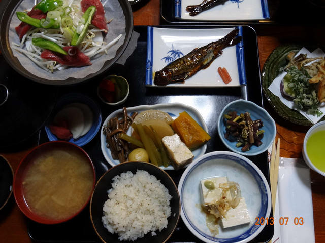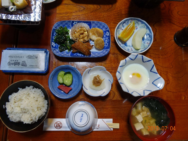 我們住的白川民宿:FURUSATO故鄉,這裡曾是日本德仁殿下在高中時代住過的民宿呢!主人是一對夫婦,很親切平易,料理雖不豪華但有著OBASAN的專業手藝,這裡是我們住的最自在最親近的一晚