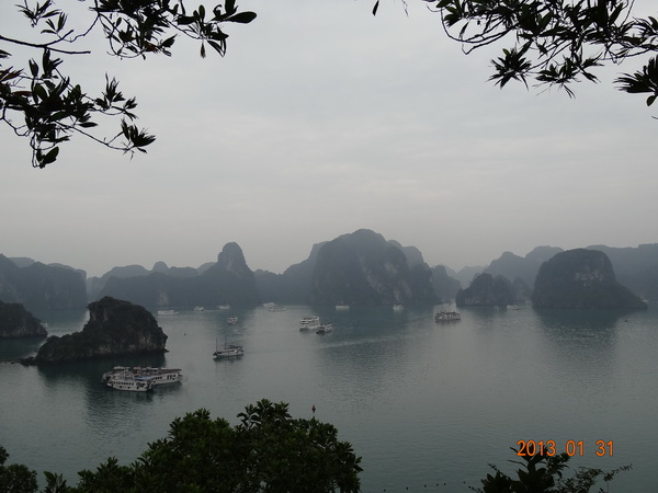 爬上溶洞,俯瞰水上桂林-下龍灣,雖沒有高照艷陽,但我們也已爬得一身是汗
