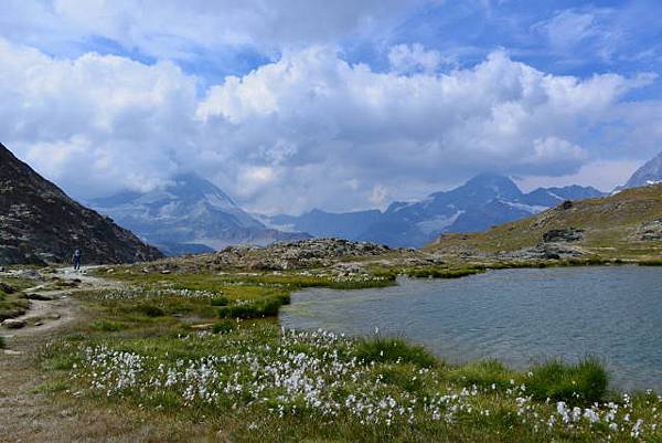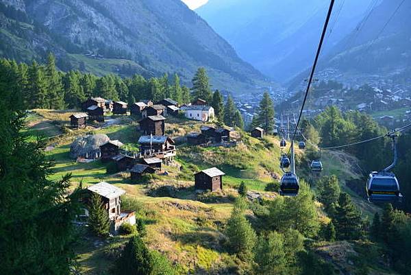這兩天在策馬特,預告健行天氣下午會有變化,我們分兩路,有人賭兩處,先坐纜車